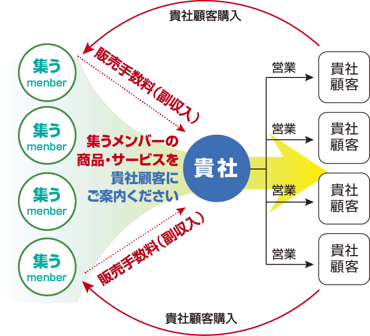 「集う」では、あなたの商品やサービスを代わりに販売してくれる仲間が見つかります。互いに信頼し、協力することで、ビジネスの成長を加速させましょう。